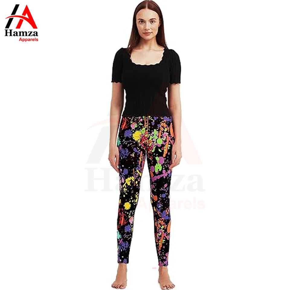 กางเกงผ้ายืดสำหรับผู้หญิงกางเกงยืดได้พิมพ์ลายกระเซ็นศิลปะเนื้อผ้านุ่มพิมพ์ลายเนยคุณภาพสูงไม่ซีดจาง