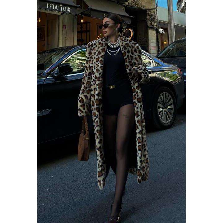 Women's Leopard Print Lined Plush Faux Fur Coat Model 7065