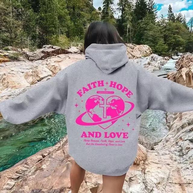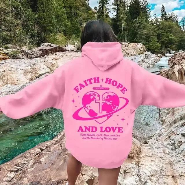 Women's Letter Pattern Print Hoodies Long Sleeved Hoodie Casual Loose Pink Palm Puff Fashion Hoodie Daily Quality Streetwear