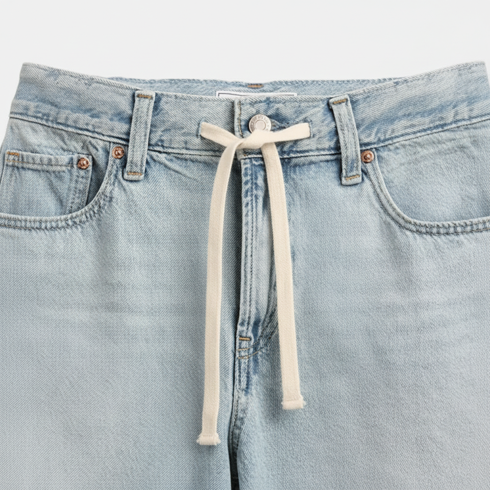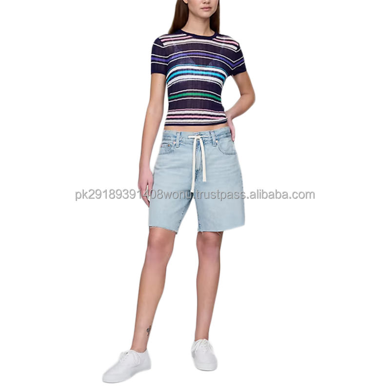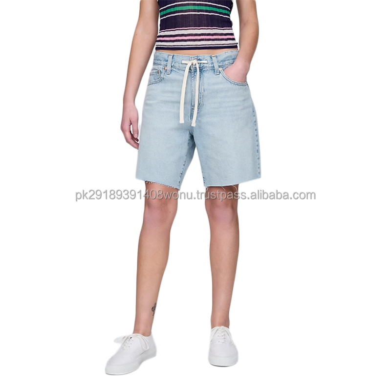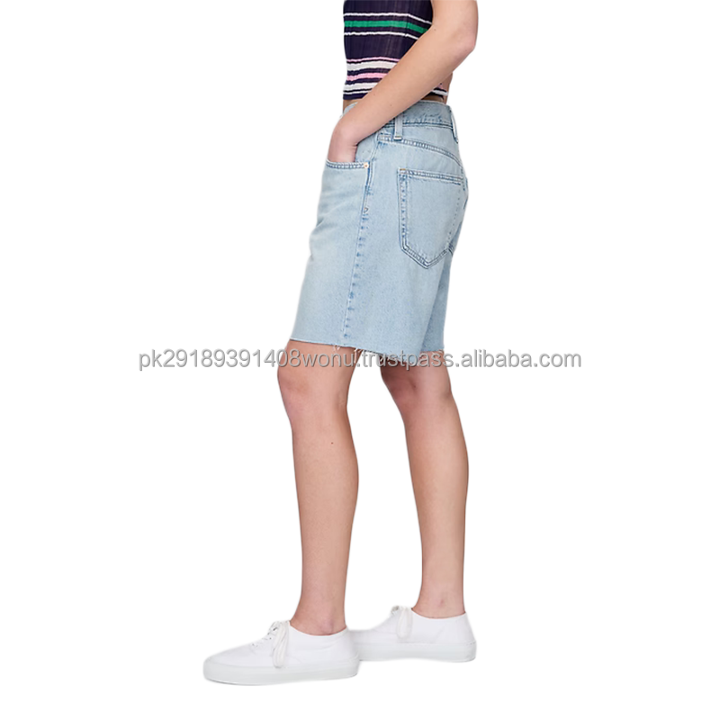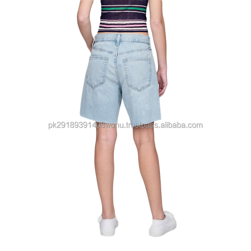 กางเกงขาสั้นผ้ายีนส์สีฟ้าอ่อนของผู้หญิงเอวกลางทรงหลวมระบายอากาศได้ดีชุดสตรีทแวร์ผ้าถักแบบลำลองสไตล์ฤดูร้อน