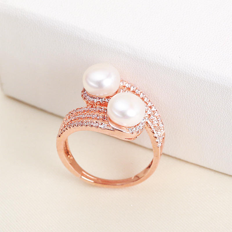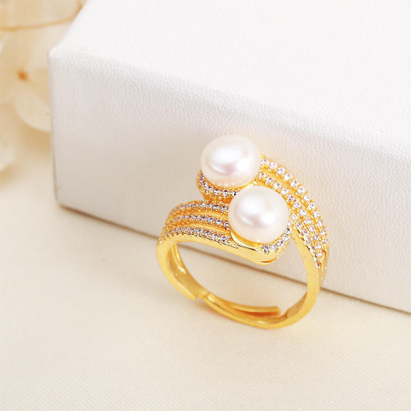 แหวนเปิดดีไซน์หรูหราเบาๆ สำหรับผู้หญิง ประดับมุกเซอร์คอน มุกน้ำจืด ขายส่งเครื่องประดับแฟชั่น