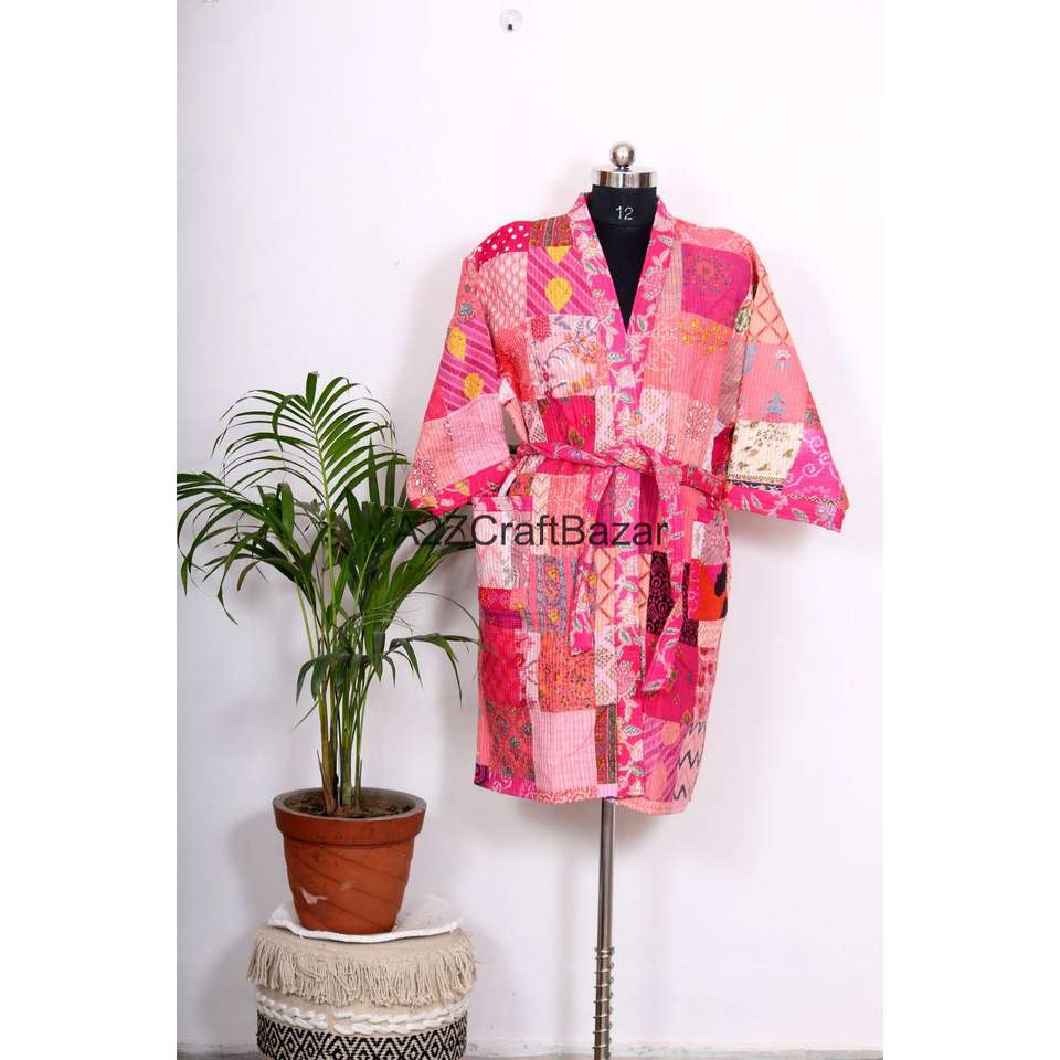 ชุดคลุมกิโมโนผู้หญิง ผ้าฝ้าย 100% น้ำหนักเบา คอวี แขนสามส่วน ลายดอกไม้ เนื้อผ้าเรียบ ระบายอากาศดี มีเชือกผูก เหมาะสำหรับวันพักผ่อน