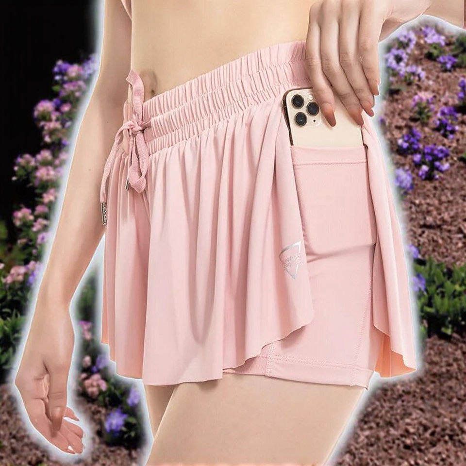 Women's Lightweight 2-in-1 Gym Running Shorts Leopard Pattern Ruffles Flowy Breathable Mid Waist Drawstring Moto & Biker