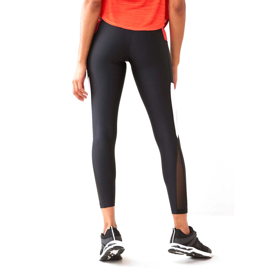 เลกกิ้งถักระบายอากาศน้ำหนักเบาสำหรับผู้หญิงเอวยางยืดยาวปกติสีพื้น