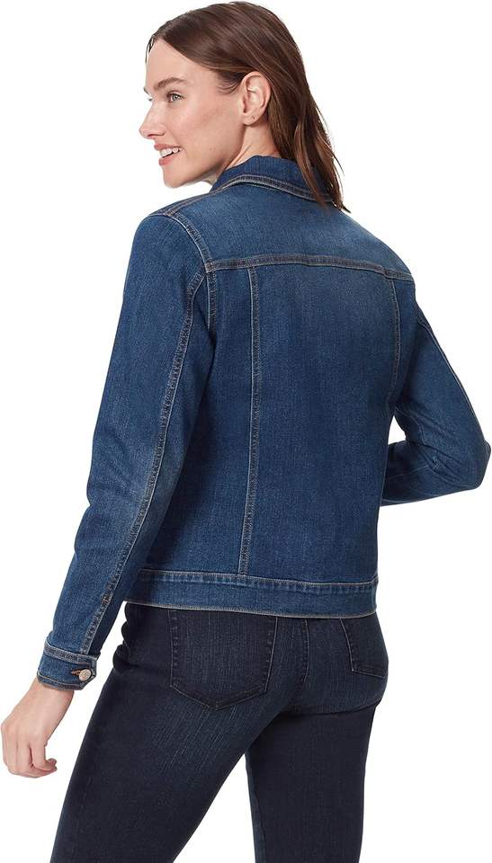 แจ็กเก็ตผ้ายีนส์ยืดได้เข้ารูปน้ำหนักเบาของผู้หญิงเสื้อแจ็คเก็ตยีนส์ตัวสั้นแฟชั่นมีกระเป๋าและเสื้อโค้ท