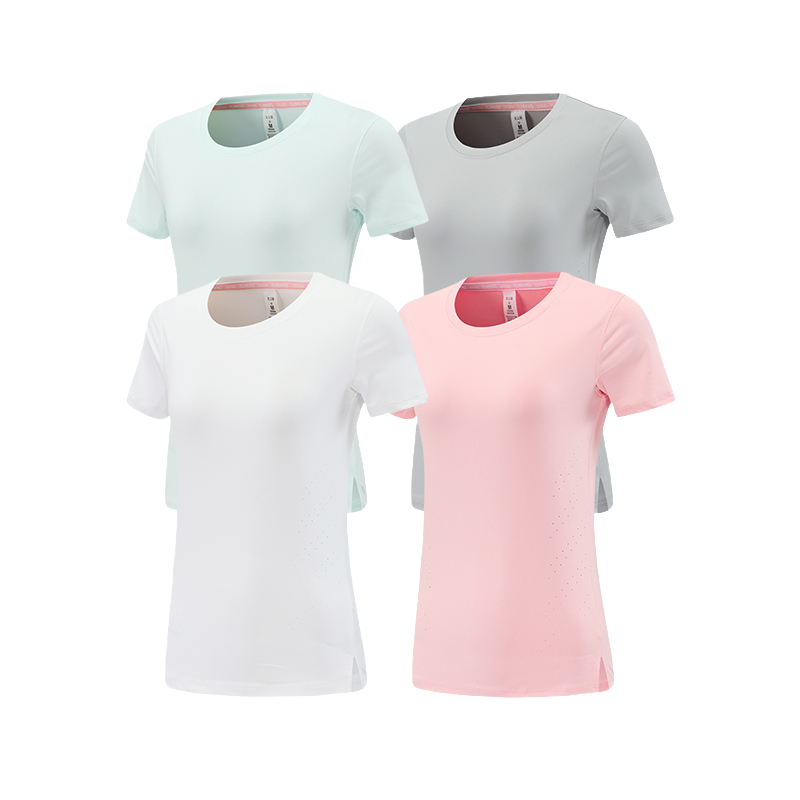 เสื้อผ้าออกกำลังกายแบบแห้งเร็วสำหรับผู้หญิงเสื้อยืดออกกำลังกายสำหรับฤดูร้อนคอกลม & ผ่าข้างพิมพ์ลาย