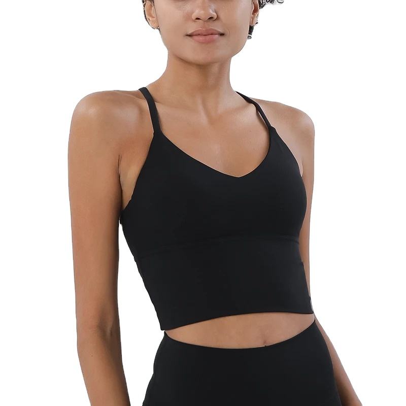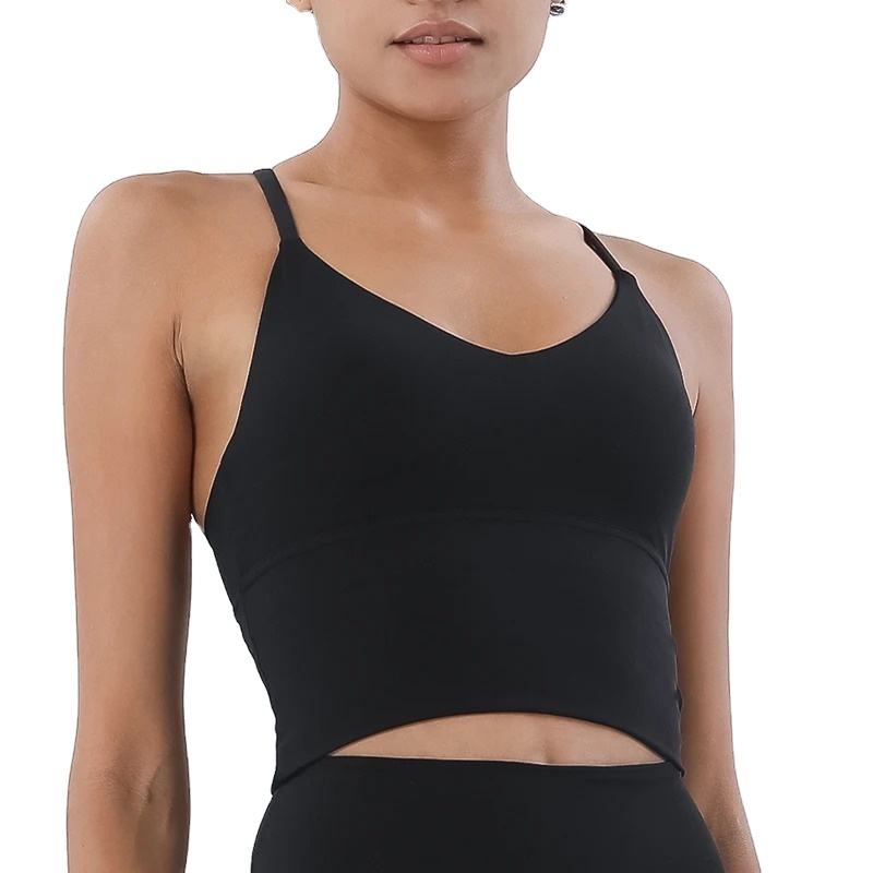 ชุดชั้นในเล่นโยคะออกกำลังกายแบบไขว้แน่นเนื้อนุ่มสีพื้น