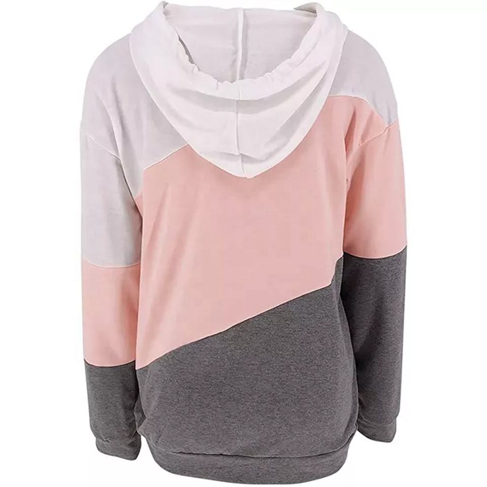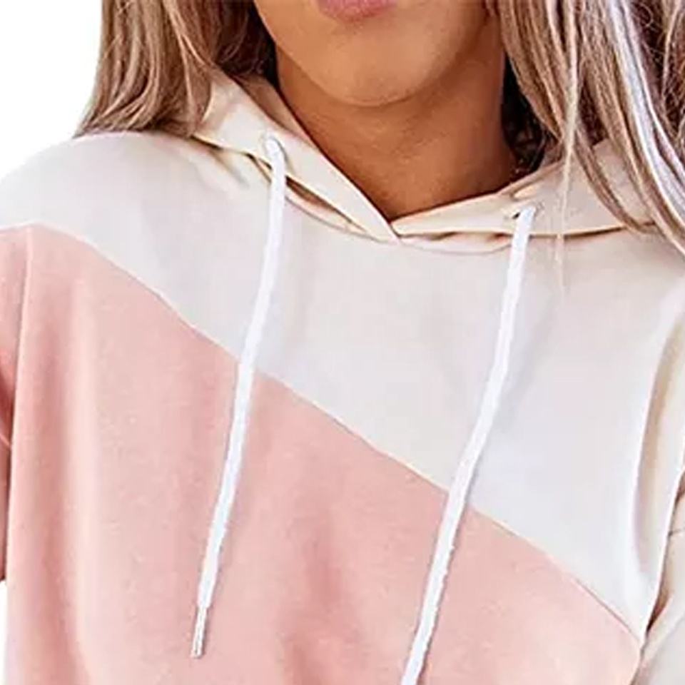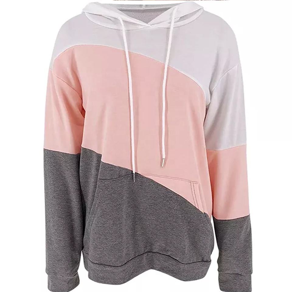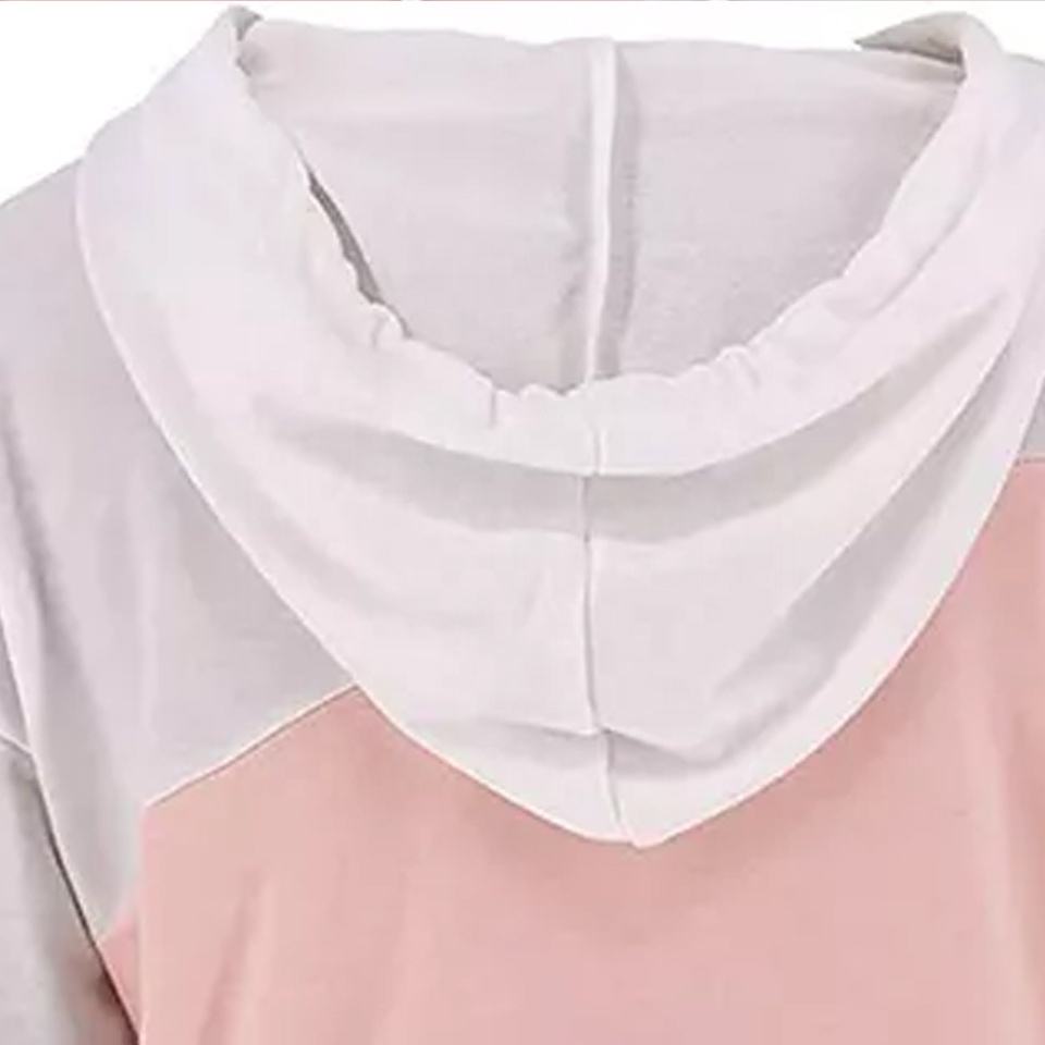 เสื้อมีฮู้ดแขนยาวน้ำหนักเบาสำหรับผู้หญิง, เสื้อสวมหัวพิมพ์บล็อกสีลำลองน่ารักใส่เล่นกีฬาไซส์ใหญ่พิเศษสำหรับฤดูหนาว