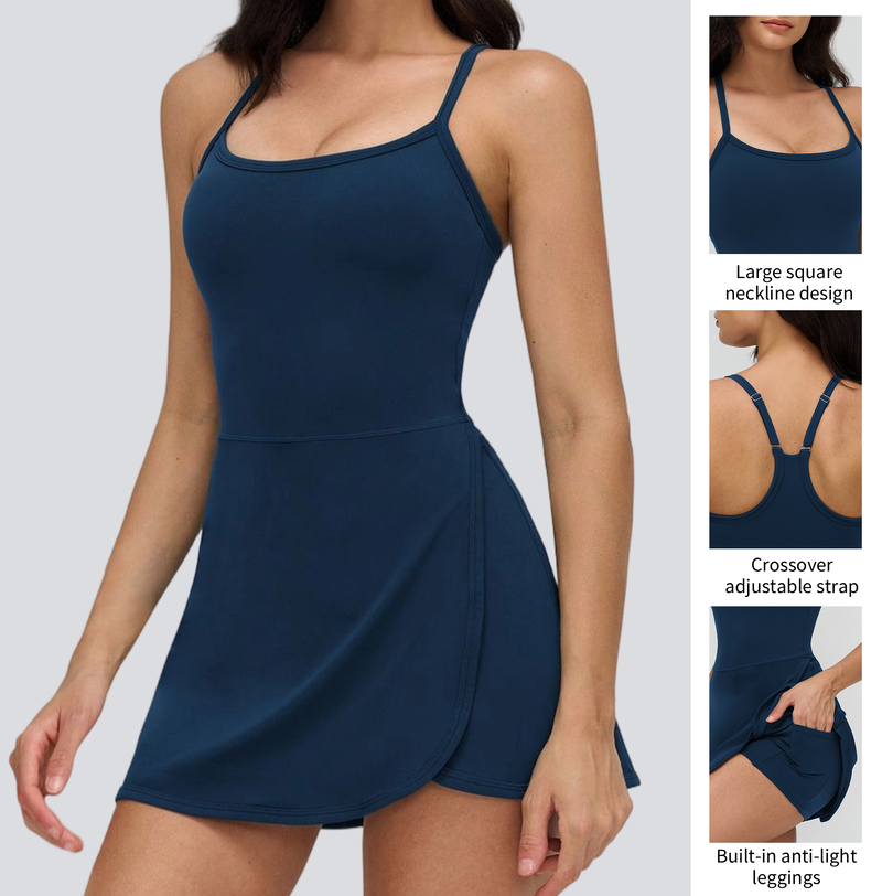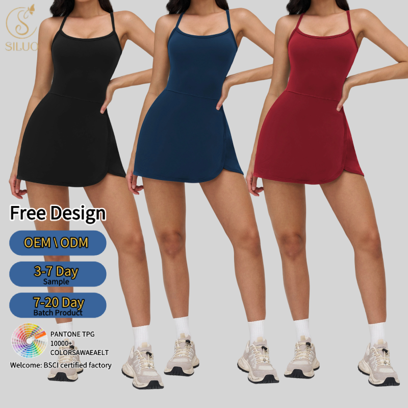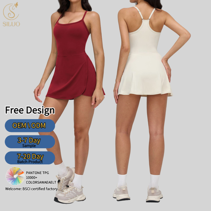 กระโปรงโยคะผู้หญิงแบบเปิดหลัง น้ำหนักเบา ยืดหยุ่นสูง กางเกงซับในป้องกันโป๊ ระบายอากาศดี ชุดเทนนิสลำลอง มีกระเป๋า เหมาะสำหรับฤดูร้อน