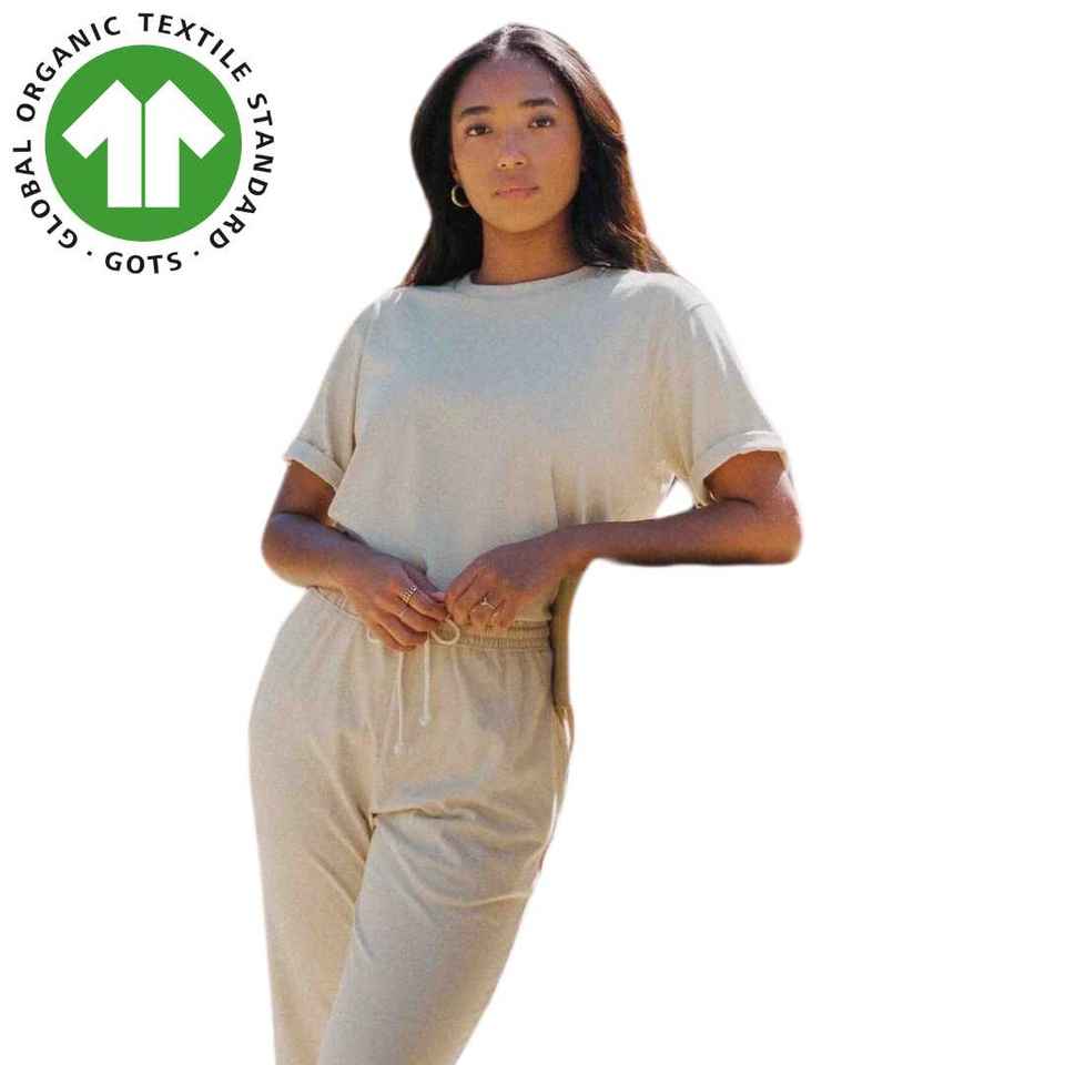 เสื้อยืดลูกเรือออร์แกนิกน้ำหนักเบาสำหรับผู้หญิง-สไตล์ยูนิเซ็กส์พร้อมวัสดุที่เป็นมิตรต่อสิ่งแวดล้อมสีดำและธรรมชาติ