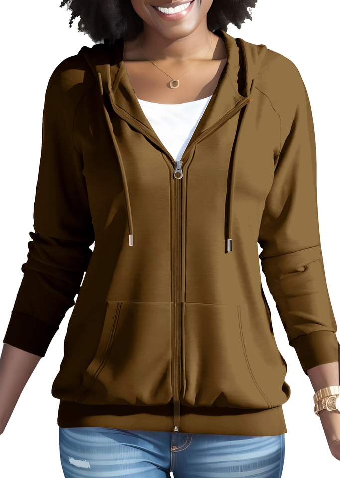 เสื้อสเวตเชิ้ตสีพื้นน้ำหนักเบาสำหรับผู้หญิง เสื้อฮู้ดมีซิปแบบลำลองพร้อมกระเป๋า เสื้อฮู้ดแขนยาว