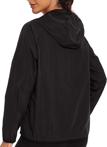 แจ็กเก็ตกันฝนมีฮู้ดกันน้ำน้ำหนักเบาสำหรับผู้หญิงเสื้อกันลมมีซิปยาวสีพื้นสำหรับทุกฤดูกาล