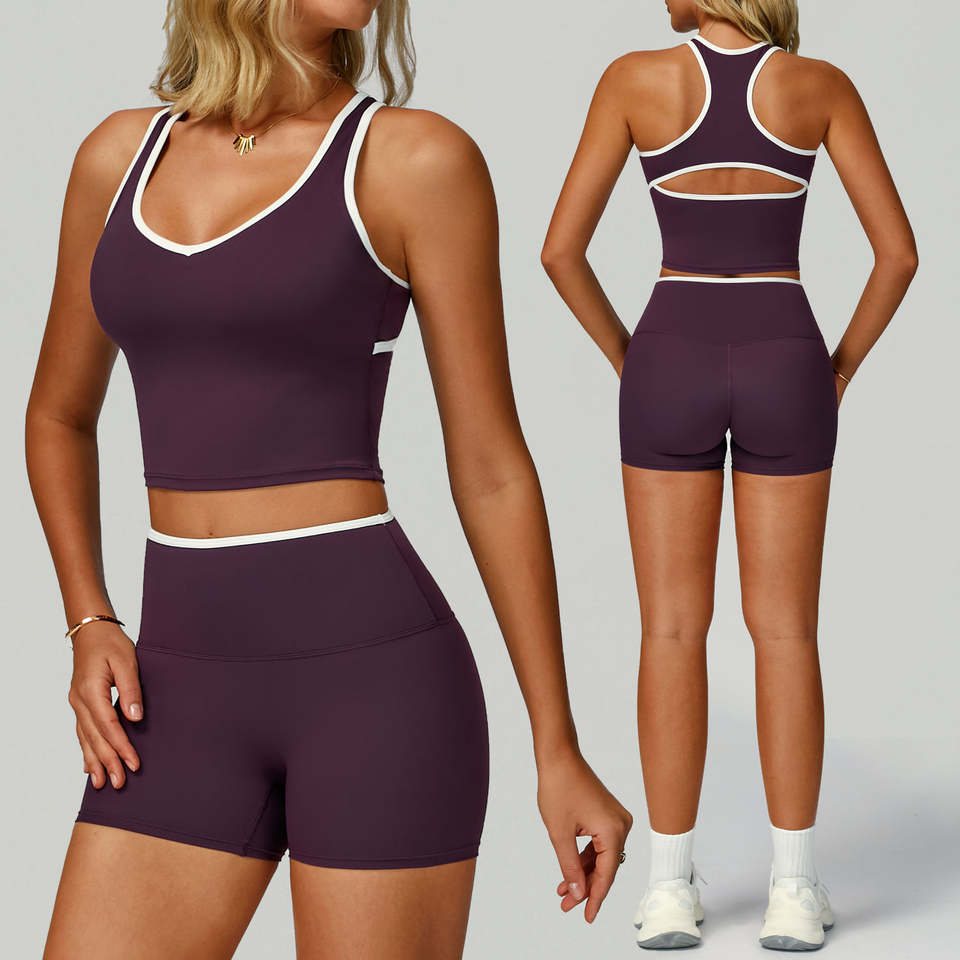 เสื้อกั๊กโยคะน้ำหนักเบาของผู้หญิงที่มี I-shaped กลับแน่นสไตล์กีฬาฤดูร้อนและฟิตเนสท็อปส์ซูสีตัดกัน