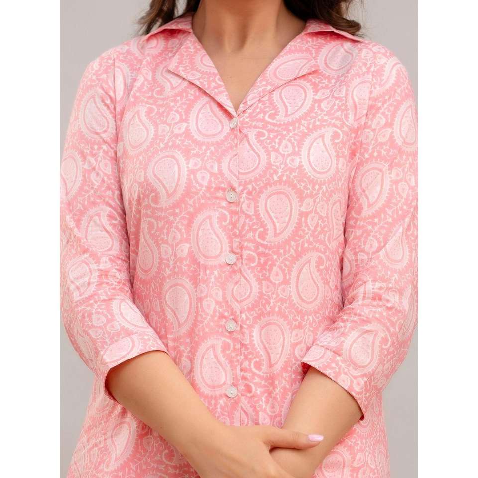 Women's Linen 2-Piece Set Baby Pink with Feathers Printed Co-ord Loose Fit Knee Length Formal for Fall Summer Outfits XS Size
