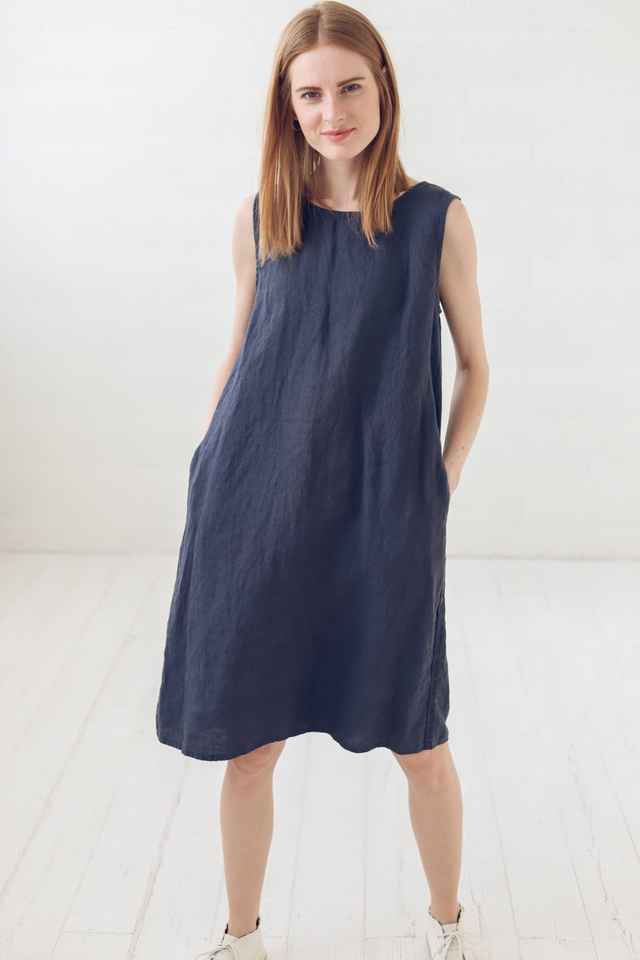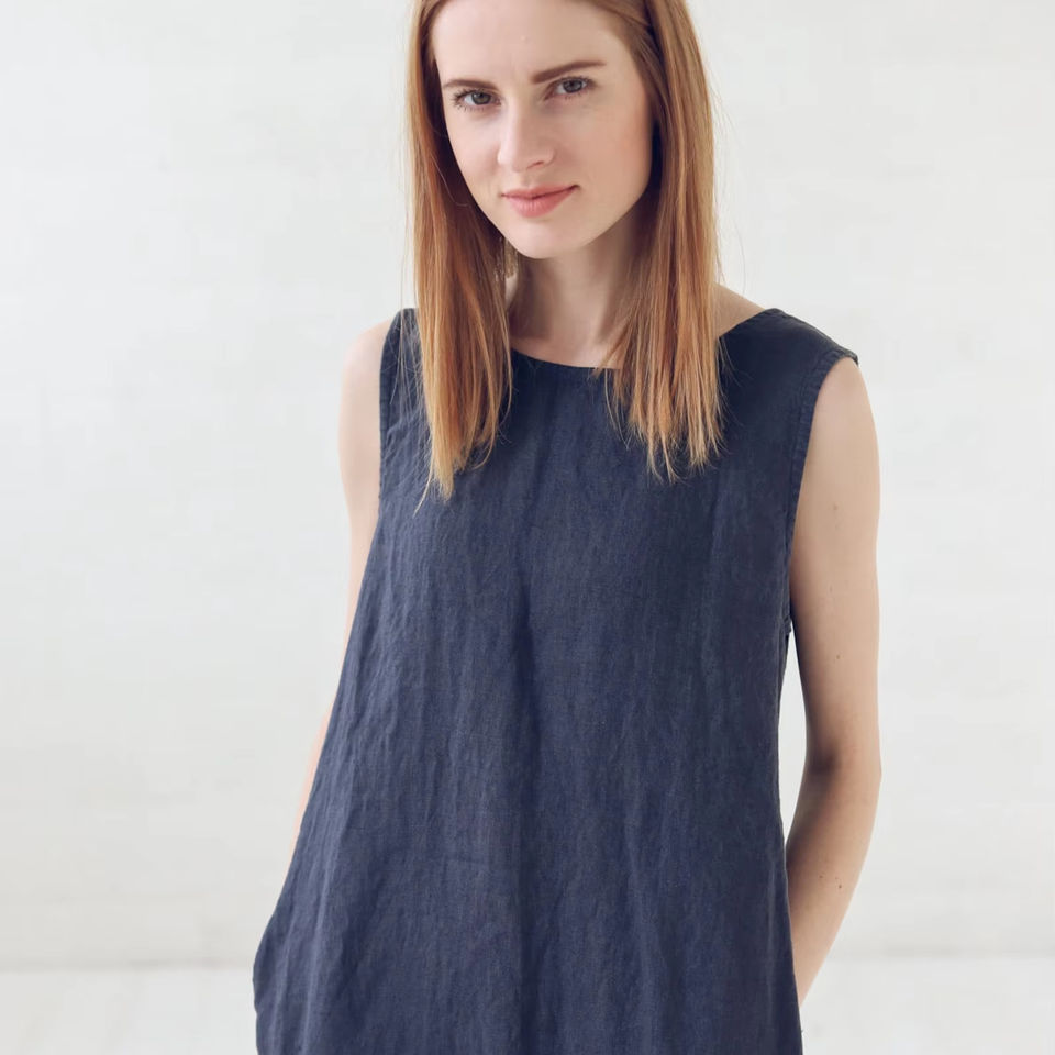 ชุดเดรสมิดิทรงเอไลน์ผ้าลินินสำหรับผู้หญิงชุดเดรสแขนกุดทรงหลวมงานแฮนด์เมดชุดฤดูร้อนออกแบบได้ตามต้องการพร้อมกระเป๋าผ้าทอ