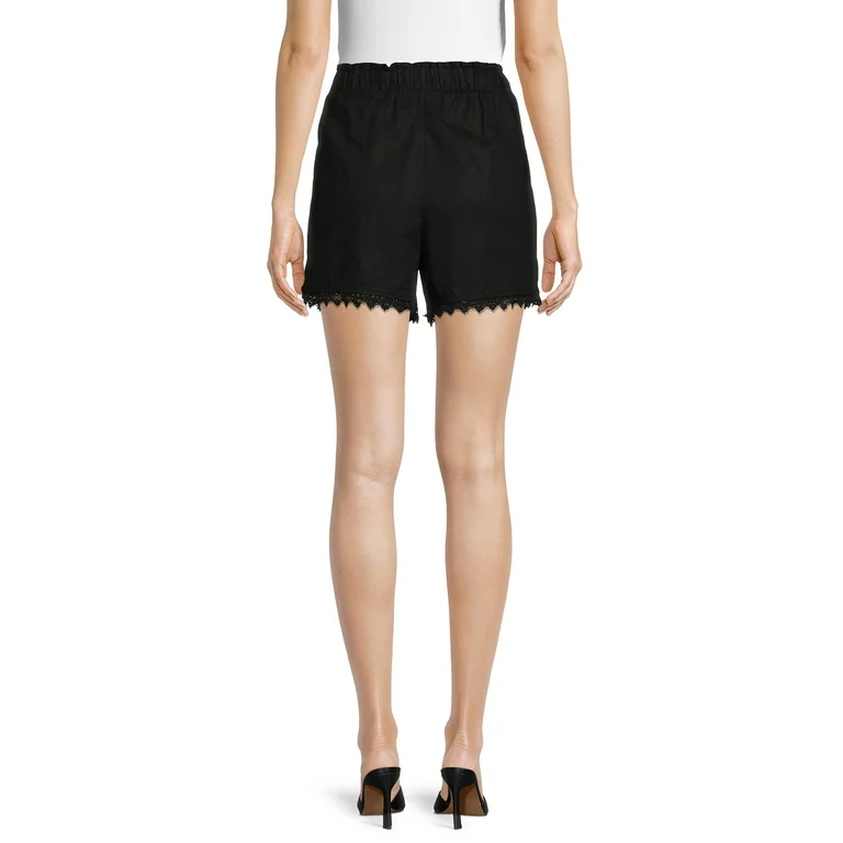 กางเกงขาสั้นผู้หญิงผ้าลินินผสมกางเกงขาสั้นสำหรับผู้หญิงกางเกงขาสั้นลำลองเอวสูงกางเกงขาสั้นฤดูร้อน