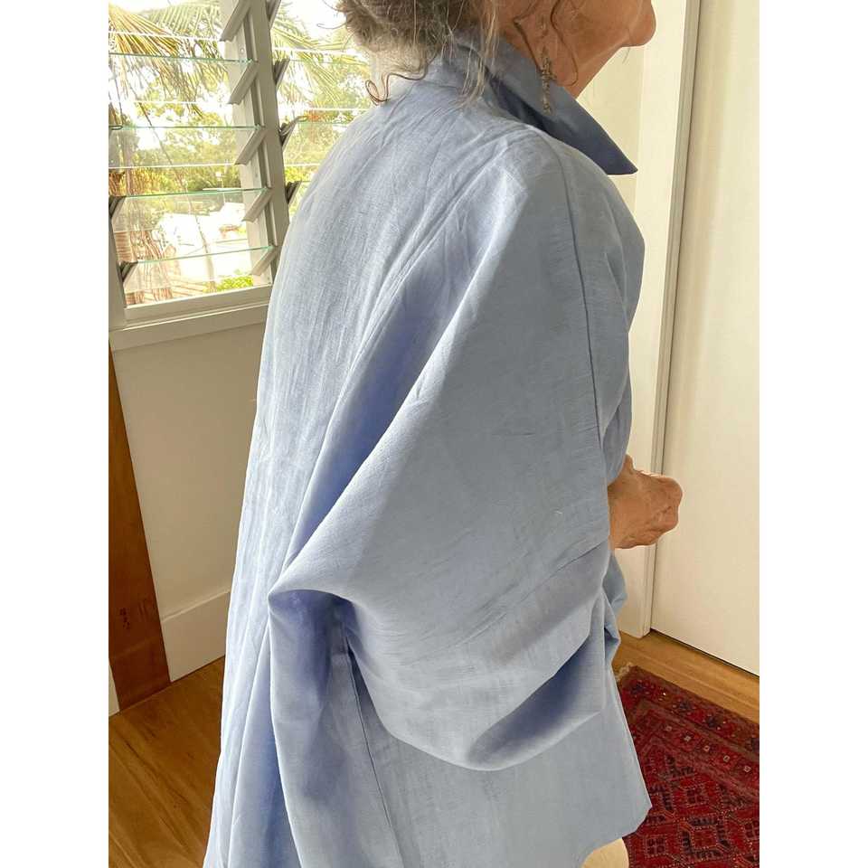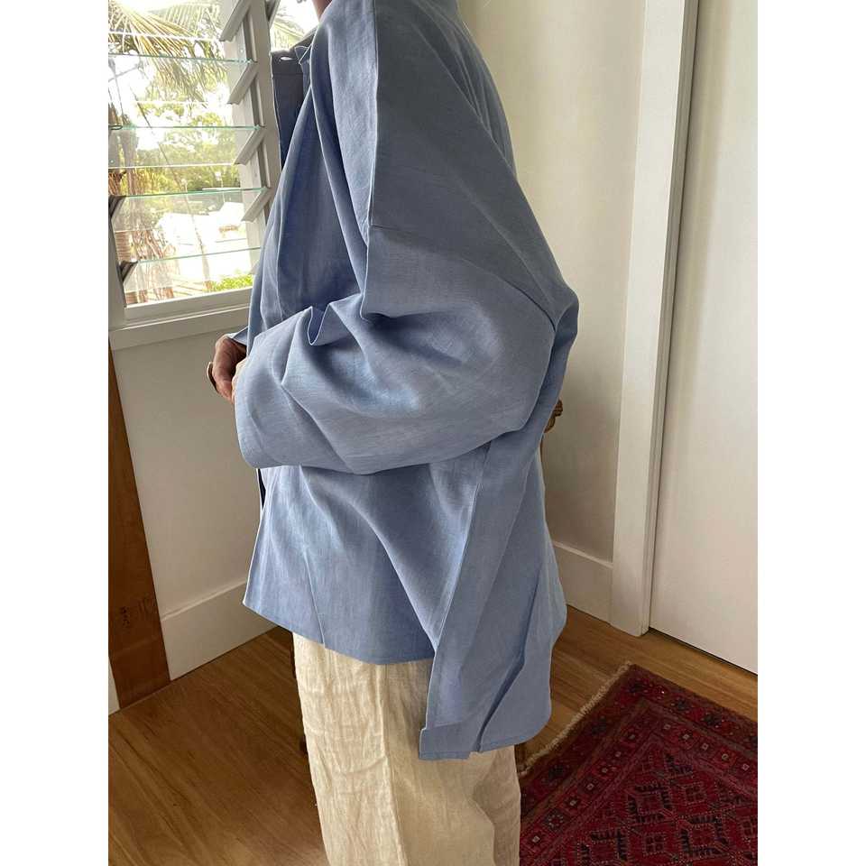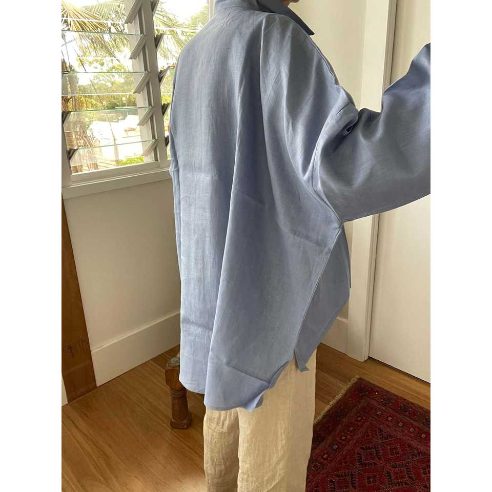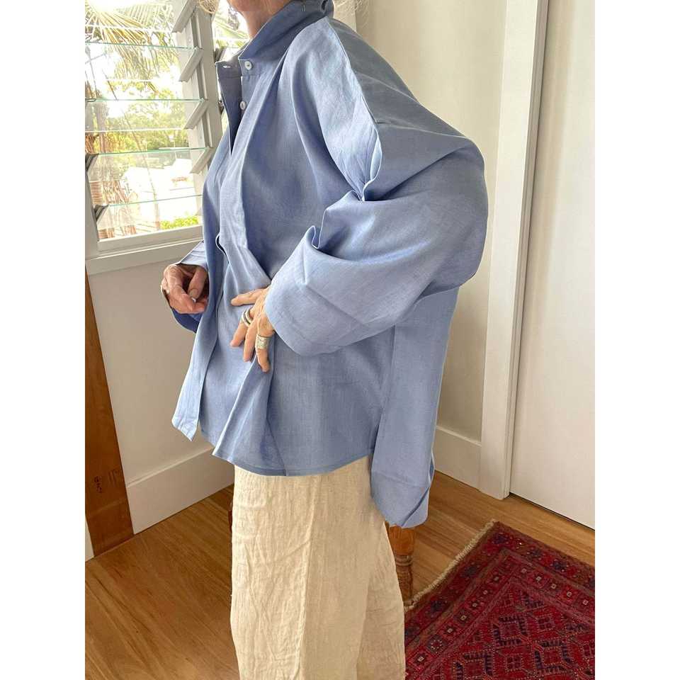 เสื้อเชิ้ตผ้าลินินทรงโอเวอร์ไซส์สำหรับผู้หญิง สีพื้น ระบายอากาศได้ดี ตกแต่งด้วยลูกไม้ คอตั้งระบาย ใส่ได้ทุกโอกาส ฤดูใบไม้ผลิ/ฤดูร้อน ฤดูใบไม้ร่วง
