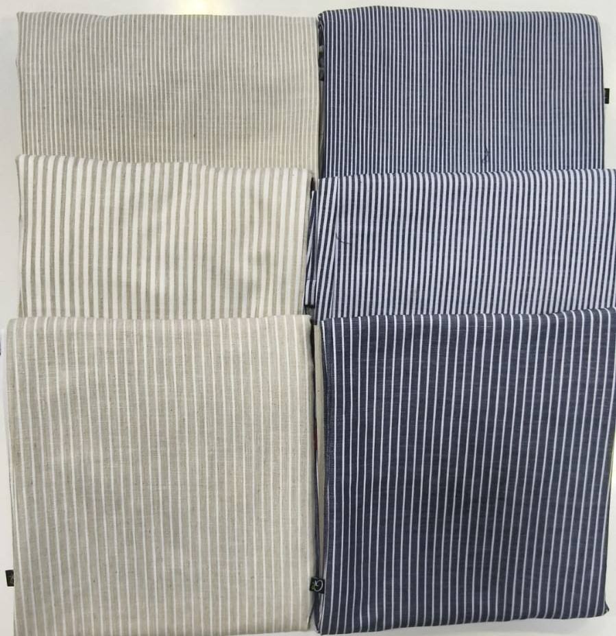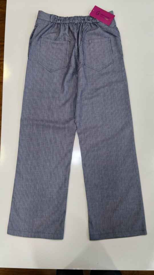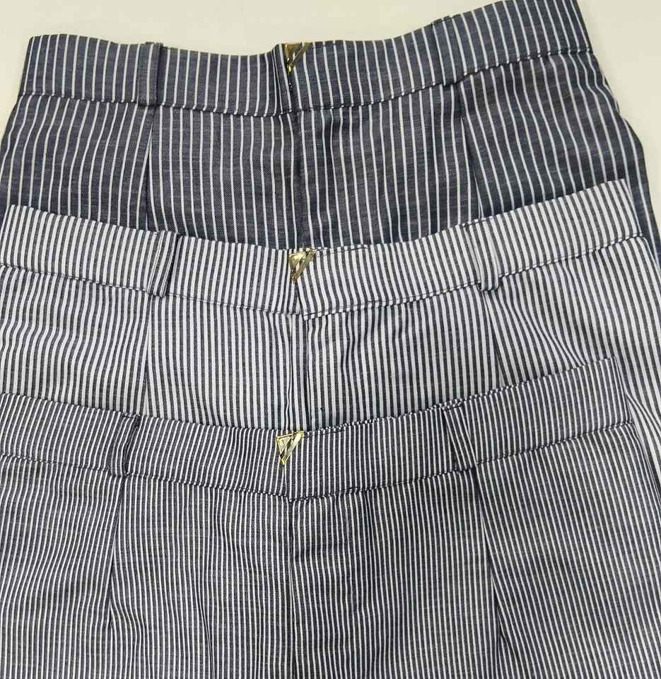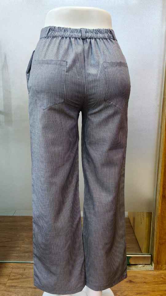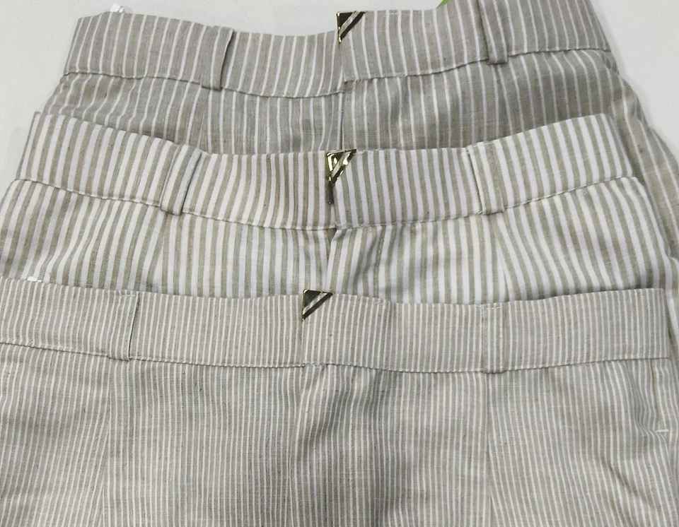 กางเกงผ้าลินินลายทางทรงตรงหลวมสำหรับผู้หญิง