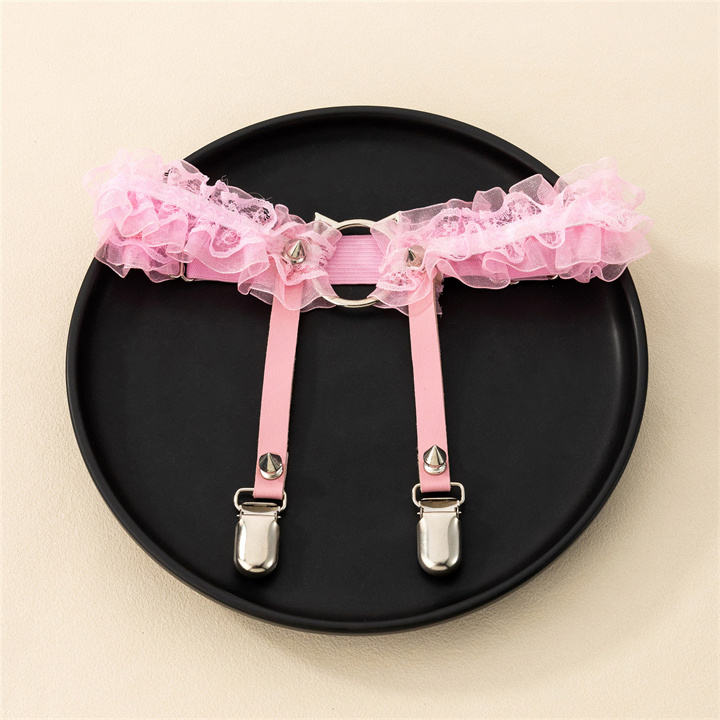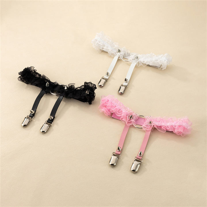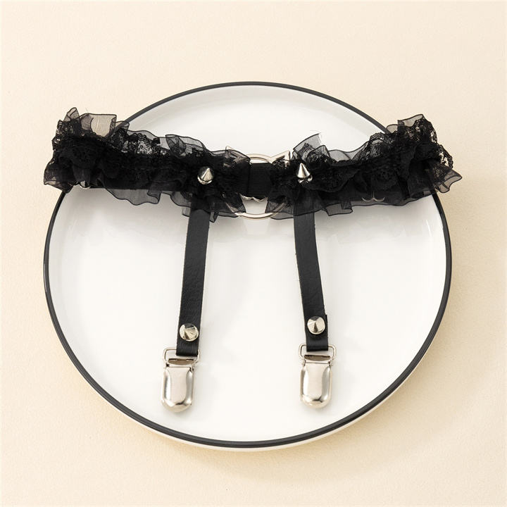 Women's Lolita Punk Style Adjustable Elastic Leg Garter Personalized Cat Rivet Thigh Loop Wedding Other Girls Lace Leg Garter