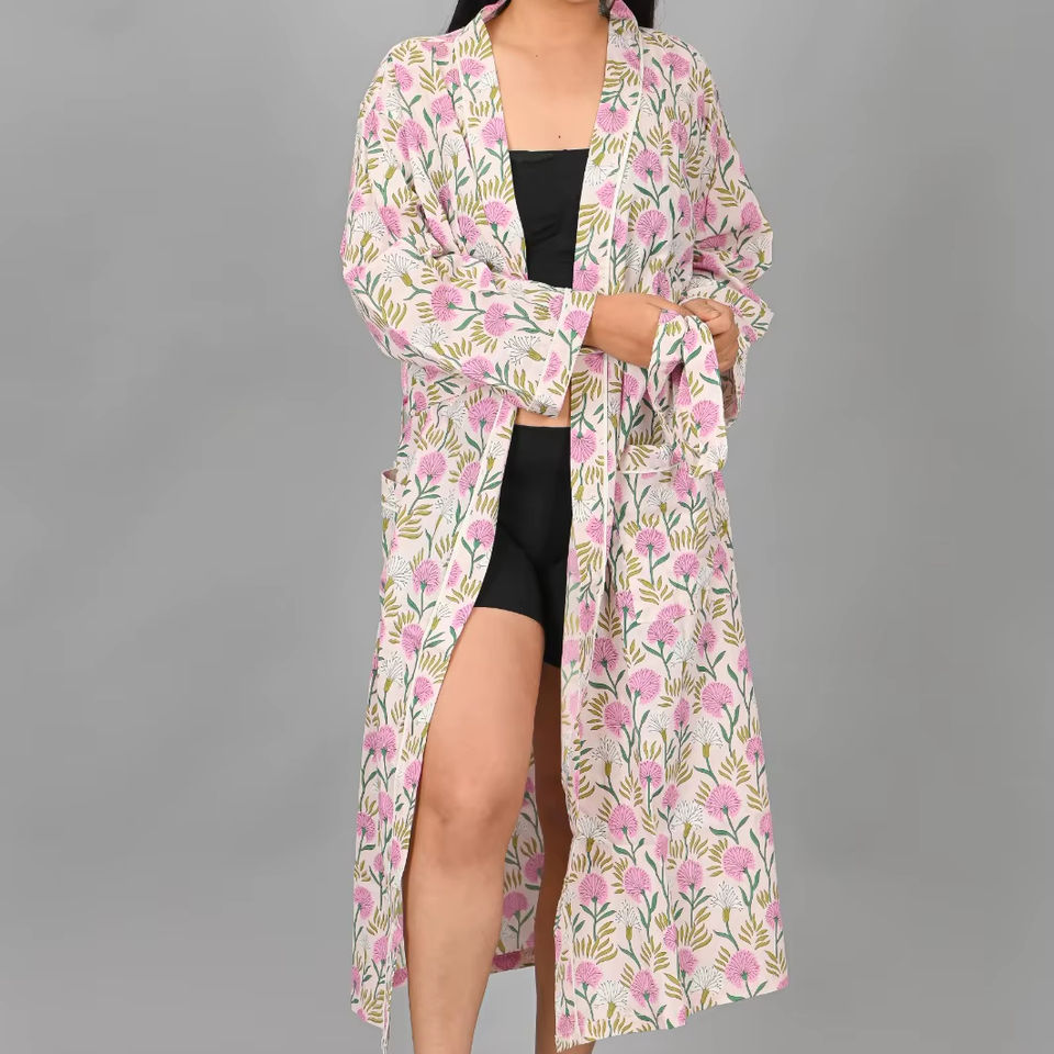 ชุดคลุมอาบน้ำผ้าฝ้ายยาวสำหรับผู้หญิง ชุดนอน ชุดคลุมนุ่มสบาย แฟชั่นชุดคลุมชายหาด ชุดคลุมว่ายน้ำ ชุดเดรสชายหาดสำหรับผู้หญิง