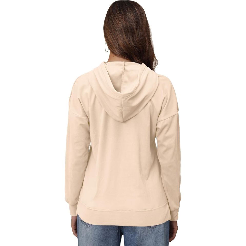 เสื้อสเวตเตอร์ถักยาวมีฮู้ดสำหรับผู้หญิงผ้าฝ้ายโพลีเอสเตอร์ระบายอากาศได้ดีป้องกันการเกิดขน
