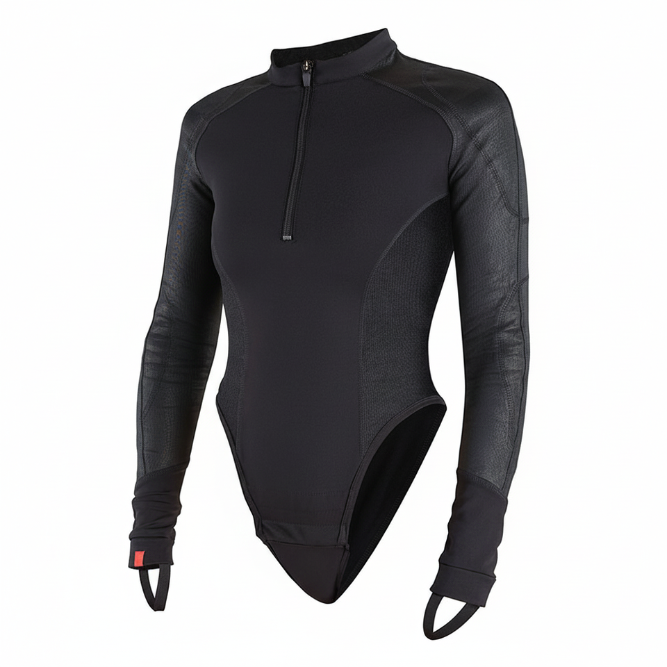 Women's Long Sleeve Bodysuits Quick Dry Quarter Zipper Up One Piece Casual Summer Wear Thumbhole Sleeve Bodysuit Ladies