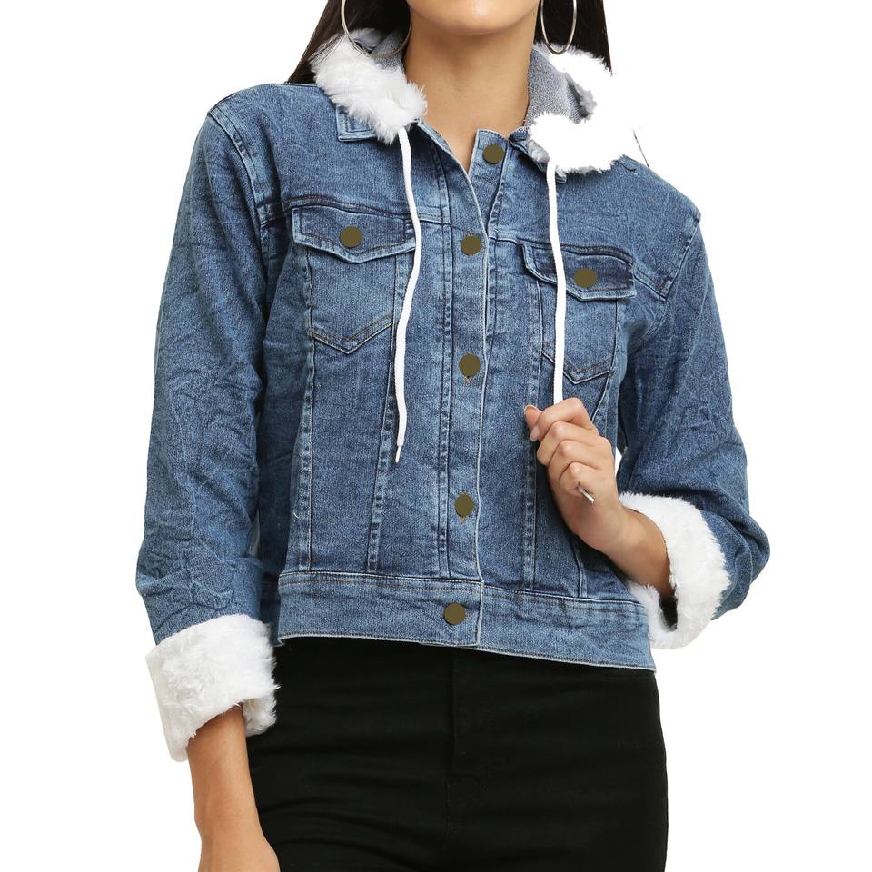 แจ็กเก็ตยีนส์แขนยาวสำหรับผู้หญิงแจ็กเก็ตผ้าคอตตอนสวมใส่สบายระบายอากาศได้ดี