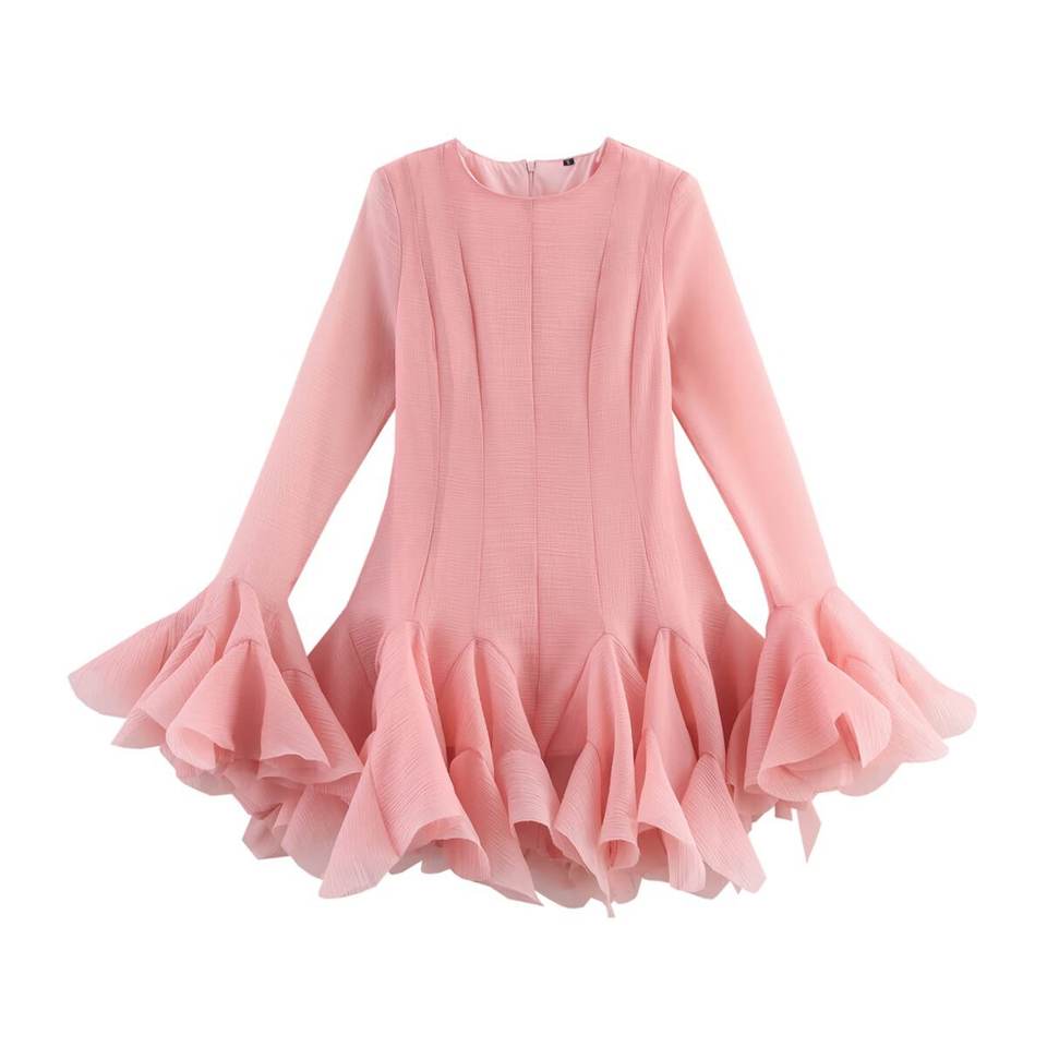 เดรสแฟชั่นผู้หญิงแขนยาวแต่งระบายหลายชั้นพองฟู