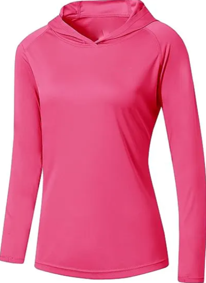 เสื้อตกปลาแขนยาวแห้งเร็ว SPF ของผู้หญิงมีฮู้ดขนาดพิเศษและระบายอากาศได้ดี