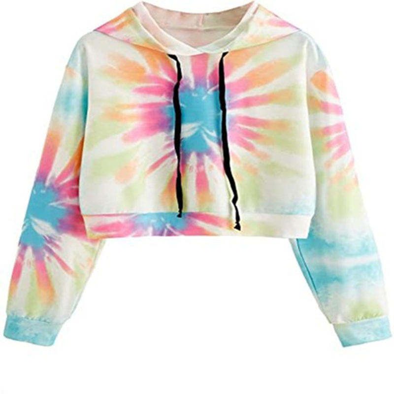 เสื้อฮู้ดครอปแขนยาวลายมัดย้อมสำหรับผู้หญิง เสื้อฮู้ดสำหรับออกกำลังกายในฤดูหนาว พิมพ์ลายโลโก้ด้านหน้า ผ้าคอร์ดูรอยบุซับใน สไตล์ Y2K สำหรับฤดูใบไม้ผลิและฤดูใบไม้ร่วง