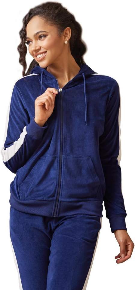 ชุดวอร์มแขนยาวแบบมีซิปสำหรับผู้หญิงชุดวอร์มผ้าแคนวาสสองชิ้นพร้อมกระดุมตกแต่งกางเกงขายาว