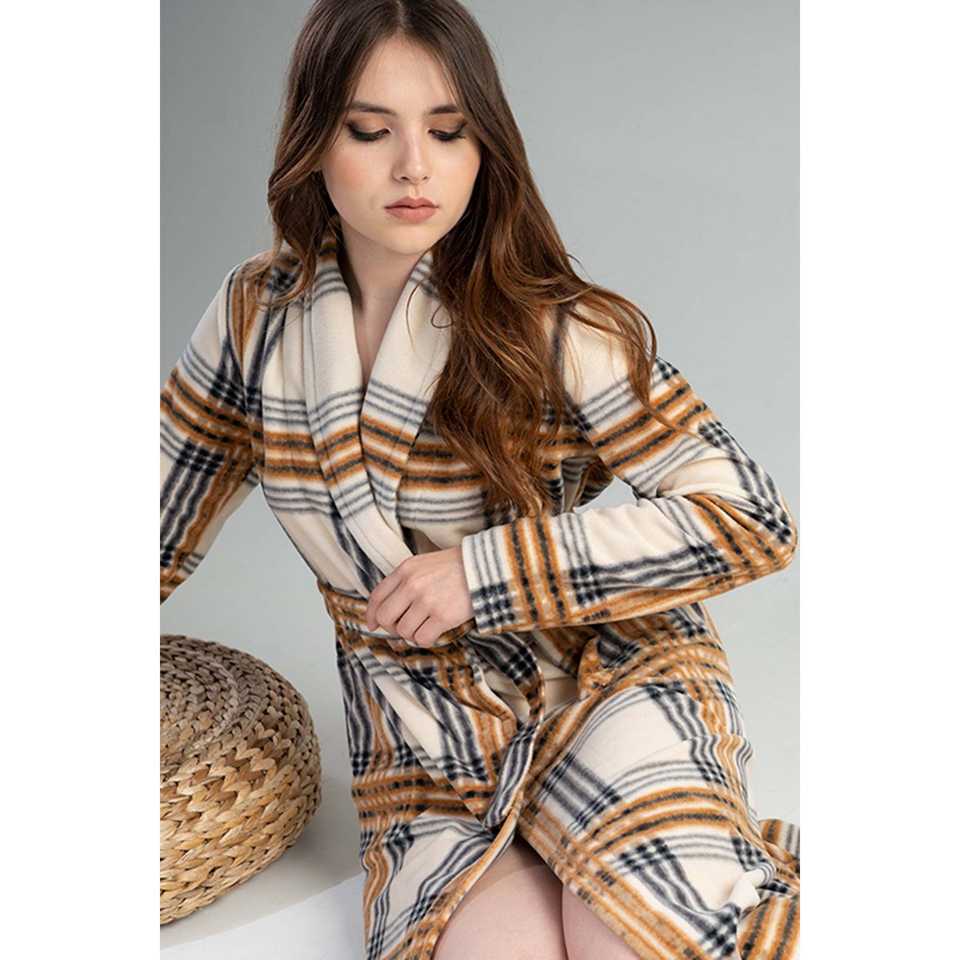 เสื้อคลุมผ้าฟลีซแขนยาวสำหรับผู้หญิง ชุดนอนแสนสบาย