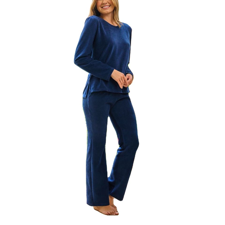เสื้อสเวตเตอร์คอกลมแขนยาวสำหรับผู้หญิงชุดถักสองชิ้นพร้อมกางเกงขายาวส่งออก