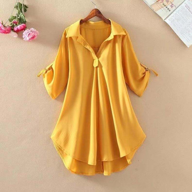 เสื้อเชิ้ตผู้หญิงทรงหลวม แฟชั่นลำลอง ไซส์ใหญ่ เสื้อเบลาส์ฤดูร้อน คอวี ลายพิมพ์