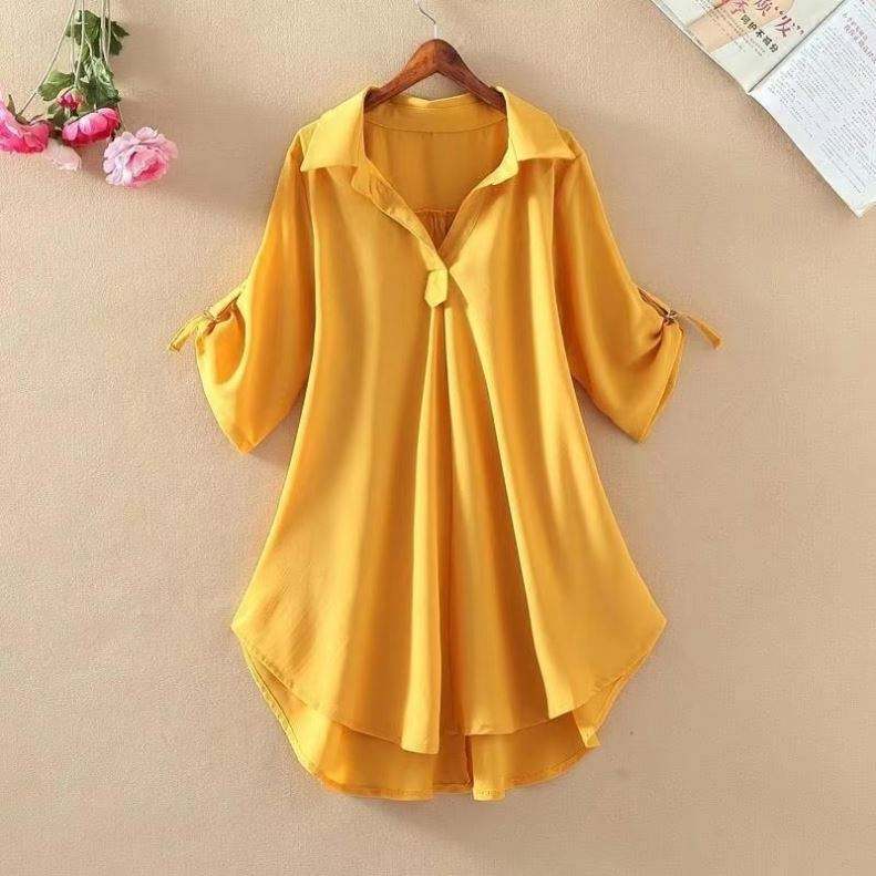 เสื้อเชิ้ตหลวมๆ สำหรับผู้หญิง แฟชั่นลำลอง เสื้อไซส์ใหญ่ เสื้อเบลาส์ฤดูร้อน คอวี พิมพ์ลาย