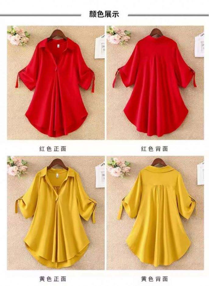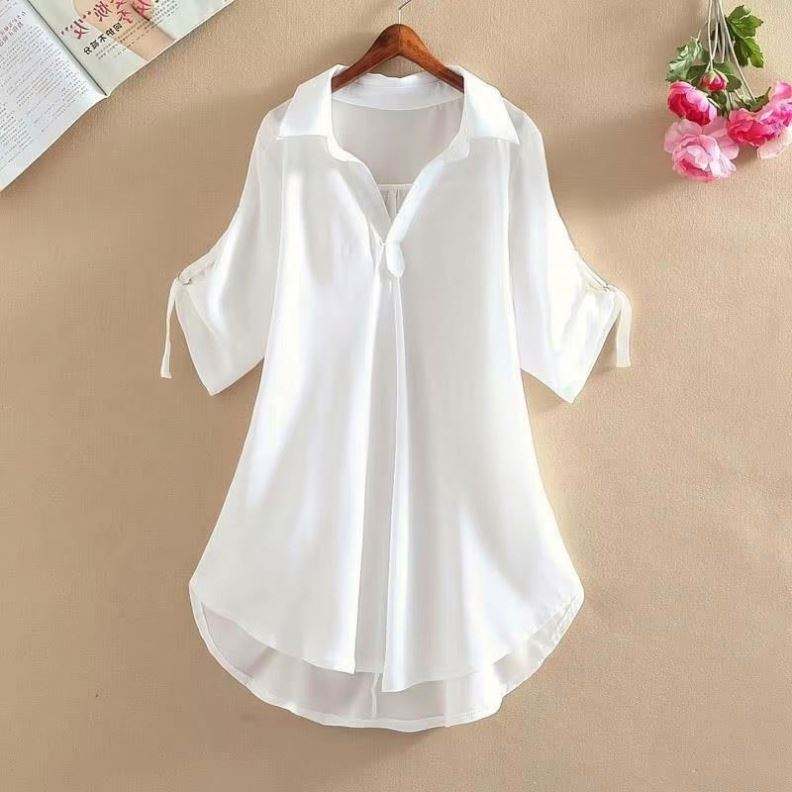 เสื้อเชิ้ตหลวมๆ สำหรับผู้หญิง แฟชั่นลำลอง เสื้อไซส์ใหญ่ เสื้อเบลาส์ฤดูร้อน คอวี พิมพ์ลาย