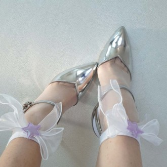 Women's Lovely Star Ankle Socks for Spring Summer Big Ribbon Mesh Design