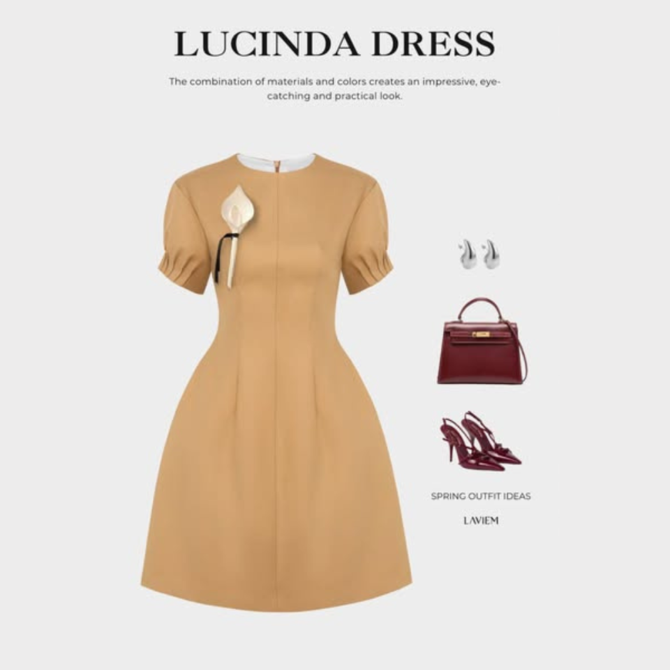ชุดเดรสลายอูฐลูซินด้าทรงเอไลน์สำหรับผู้หญิง | เดรสแฟชั่นสุดชิคและสง่างาม | เหมาะสำหรับใส่ในออฟฟิศงานกิจกรรมหรืองานเลี้ยงอาหารค่ำ