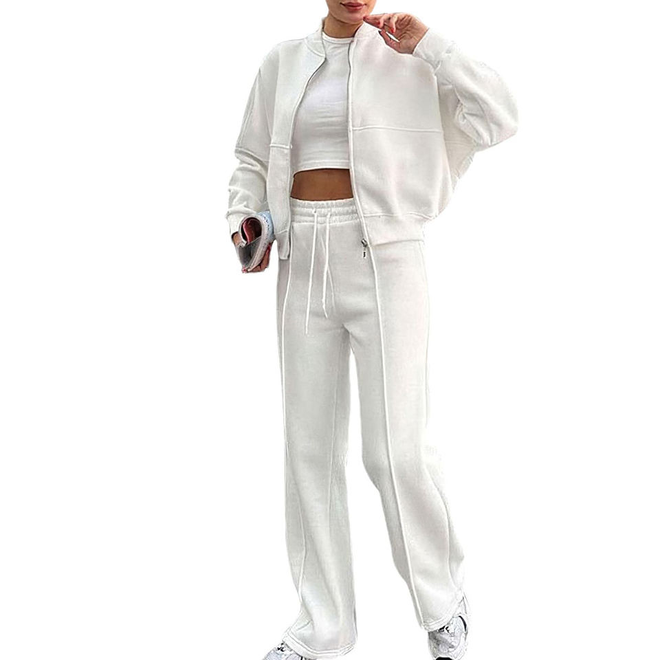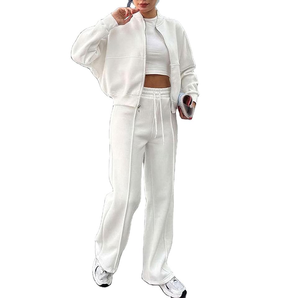 ชุดวอร์ม2ชิ้นสุดหรูของผู้หญิงชุดกันลมมีซิปน้ำหนักเบาและเสื้อครอปท็อปกางเกงชุดกันลม