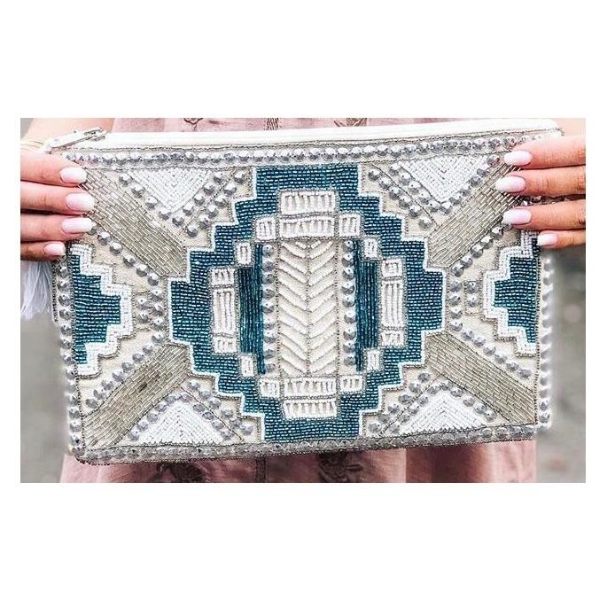 กระเป๋าคลัทช์ปอกระเจาทำมือแบบอินเดียหรูหราสำหรับผู้หญิงกระเป๋าลูกปัดแนวโบฮีเมียนออกแบบได้ตามต้องการ