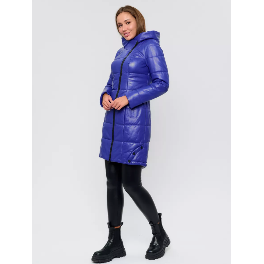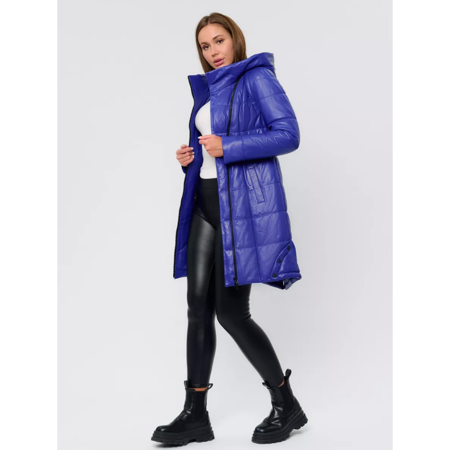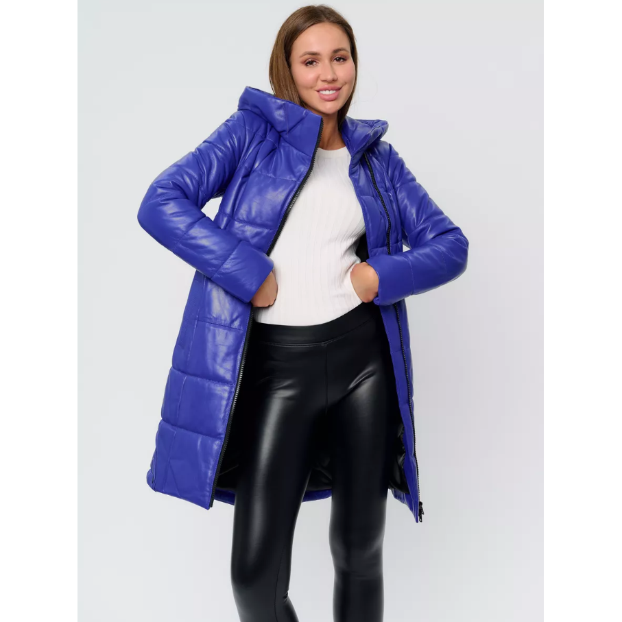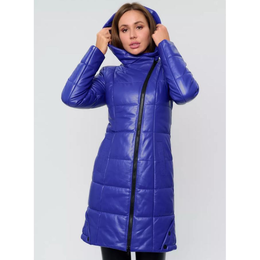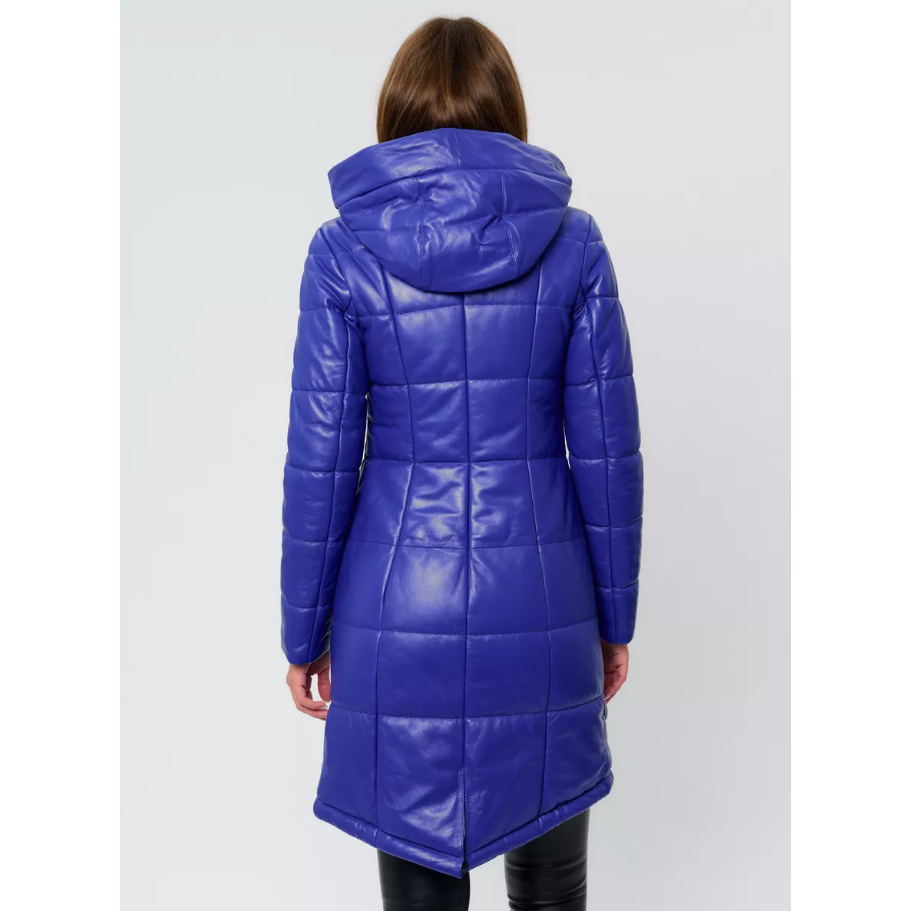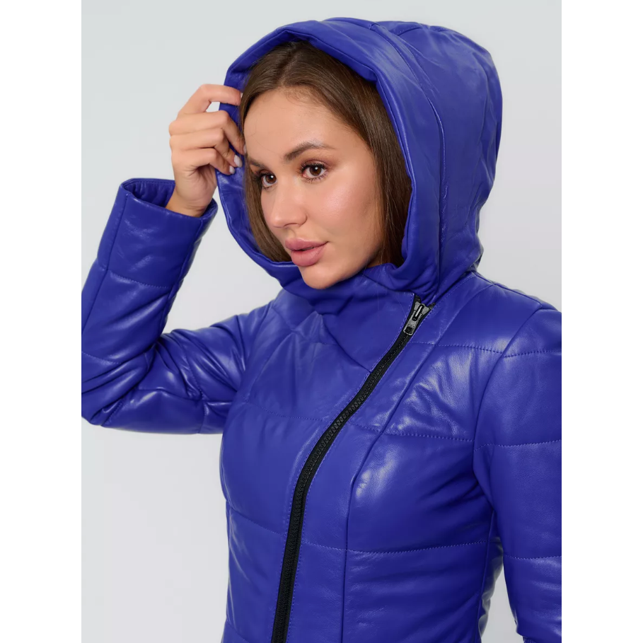 Women's Luxury Handmade Blue Quilted Genuine Lambskin Leather Coat Single Breasted Hood Print Pattern XS Size for Spring Season