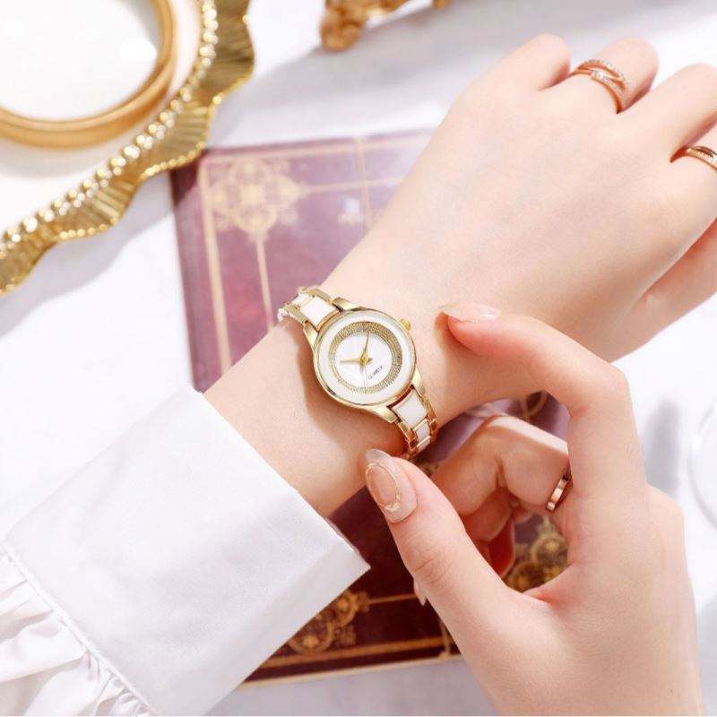 นาฬิกาข้อมือควอตซ์หรูหราสำหรับผู้หญิง สแตนเลสสตีล ดีไซน์สวยเก๋ ประดับเพชร ราคาส่งถูก