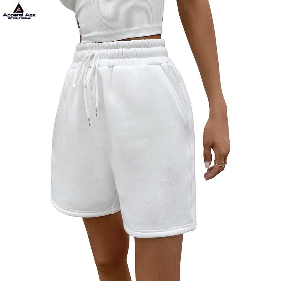 กางเกงวิ่งขาสั้นเอวกลางผ้าเทอร์รี่หรูหราสำหรับผู้หญิง สกรีนโลโก้ได้ ออกกำลังกาย ฟิตเนส มีกระเป๋า ยืดหยุ่น ระบายอากาศได้ดี สไตล์ทางการ