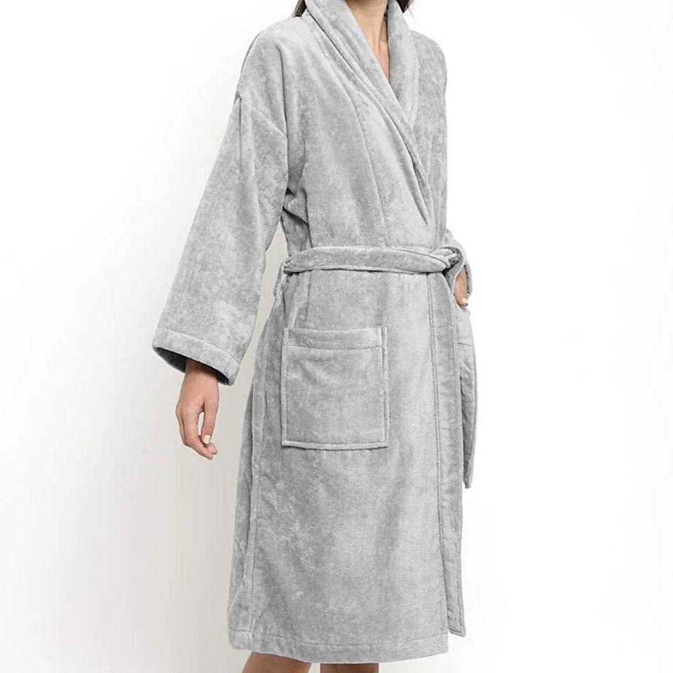 เสื้อคลุมอาบน้ำผ้าฝ้ายรักษาความยาวเข่าสำหรับผู้หญิงหรูหราพร้อมโลโก้แบบกำหนดเอง-สไตล์สปาของโรงแรมเทอร์รี่