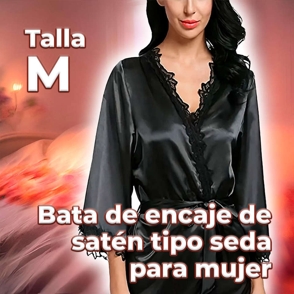 ชุดคลุมผ้าไหมซาตินสำหรับผู้หญิง ไซส์ M พร้อมแขนเสื้อและปกผ้าลูกไม้ เหมาะสำหรับเป็นชุดนอน