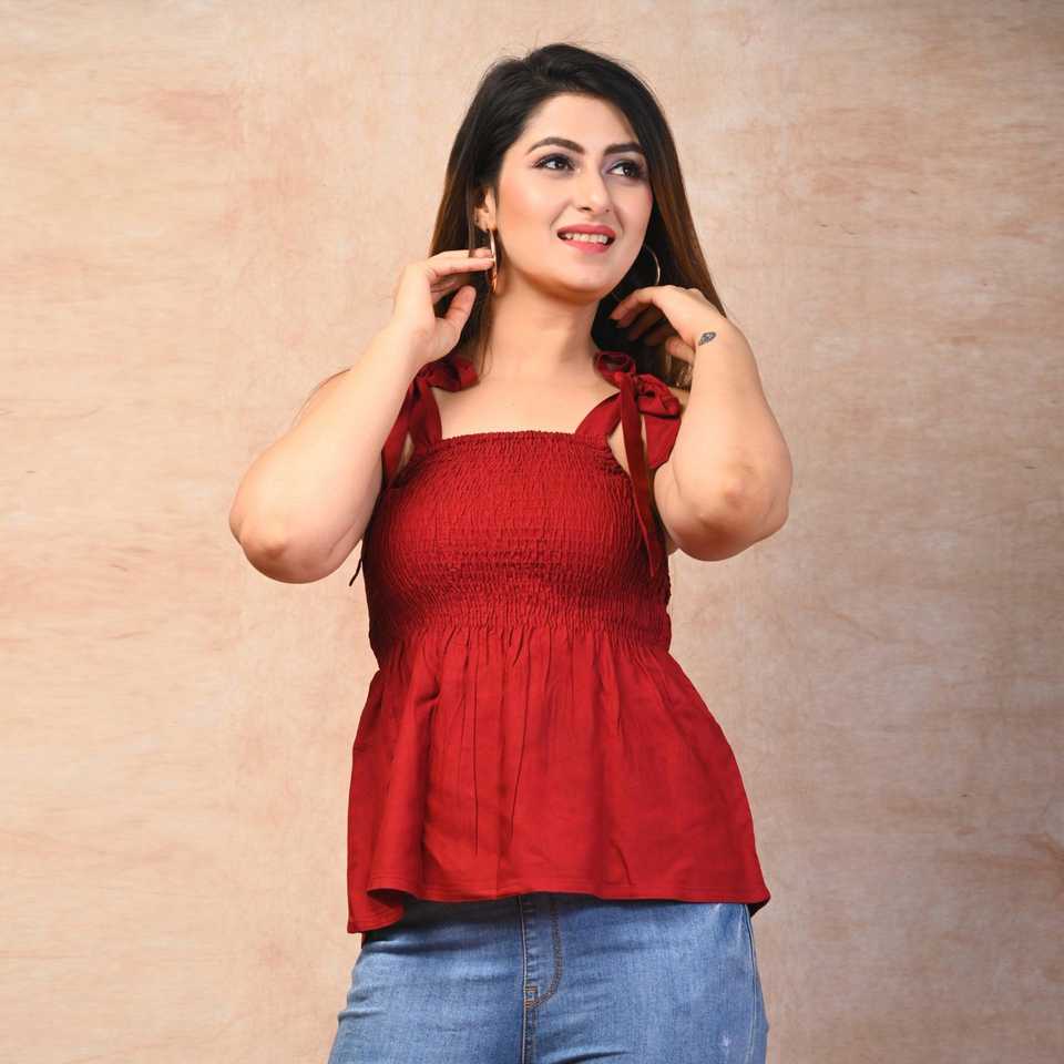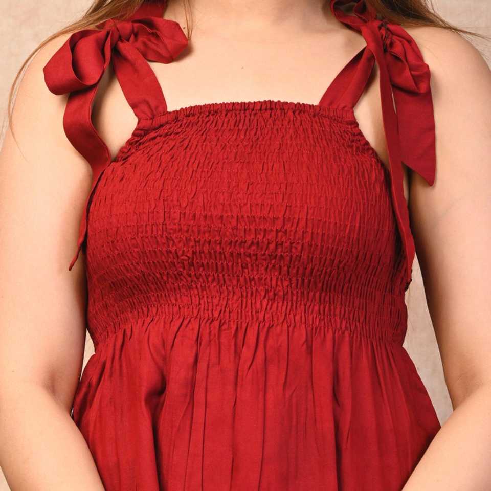 เสื้อกล้ามสีแดงเข้มของผู้หญิงเสื้อสม็อกสีพื้นแบบคลาสสิก