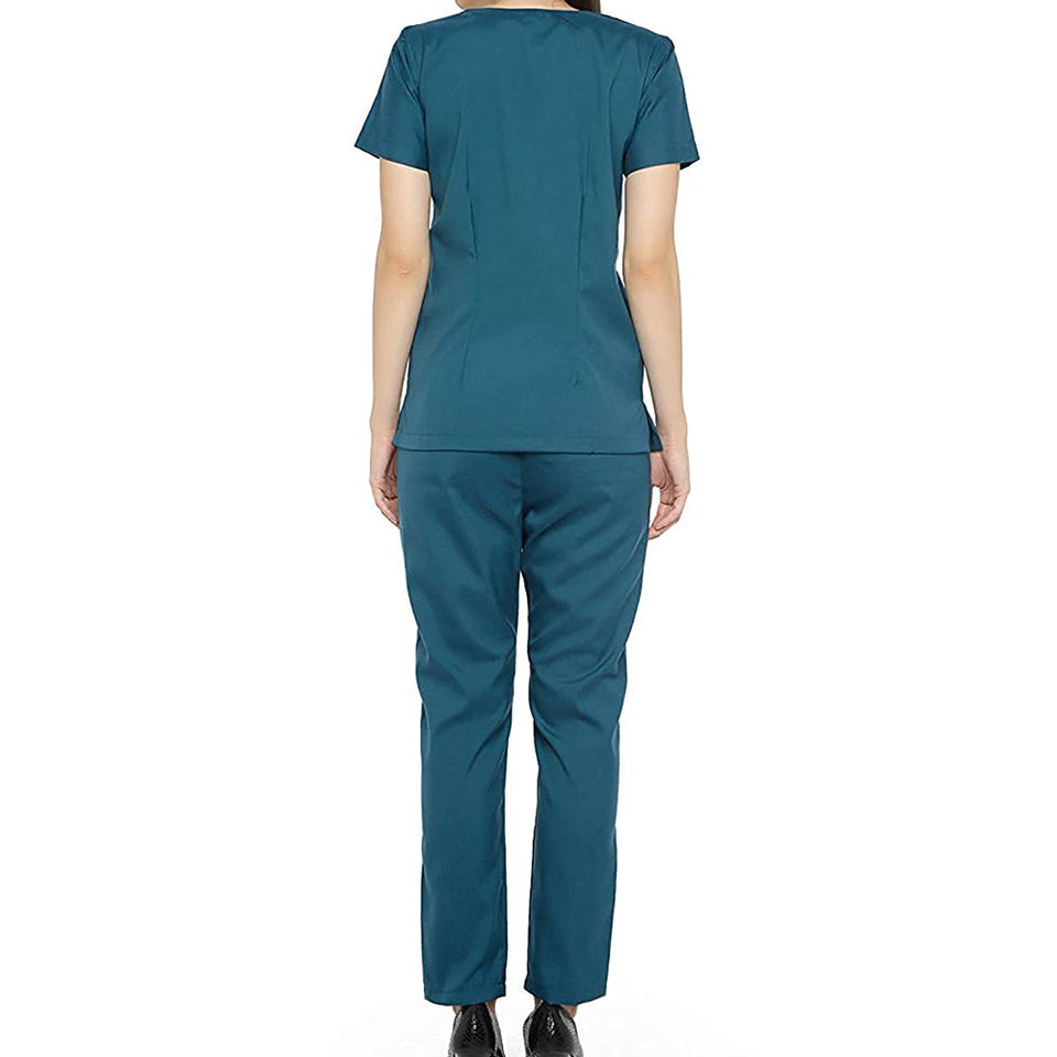 ชุดสครับแพทย์หญิง ผ้าคอตตอนผสม ทออย่างดี เสื้อและกางเกงสำหรับพยาบาลโรงพยาบาล ชุดยูนิฟอร์มสวมใส่สบาย ชุดสครับสำหรับพยาบาล ตรวจจับการเสียดสีของเข็มได้