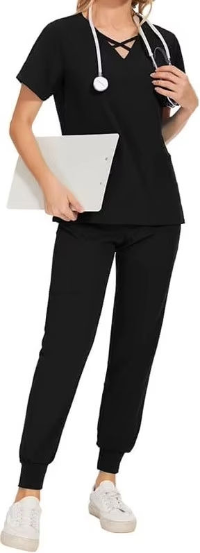 ชุดสครับแพทย์สำหรับผู้หญิง แบบแยกชิ้น เสื้อคอตั้ง ผ้าสเตรช มีกระเป๋าข้าง 2 ช่อง กางเกงโยคะทรงสอบ ผ้าเนื้อนุ่ม ยับยาก
