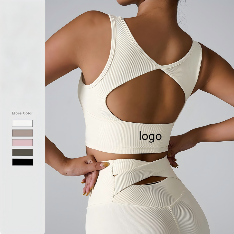 เสื้อชั้นในกีฬาแบบผูกคอ ไร้สายหลัง สำหรับผู้หญิงไซส์พลัส รองรับปานกลาง มีฟองน้ำถอดได้ โลโก้ด้านหน้า ระบายอากาศได้ดี ผลิตจากวัสดุสแปนเด็กซ์/ไนลอน