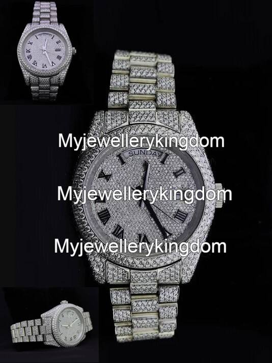 นาฬิกาข้อมือสแตนเลสสตีลหรูหราสไตล์ฮิปฮอปประดับโมอิสซาไนต์สำหรับผู้หญิงและผู้ชาย กันน้ำได้ 10 บาร์